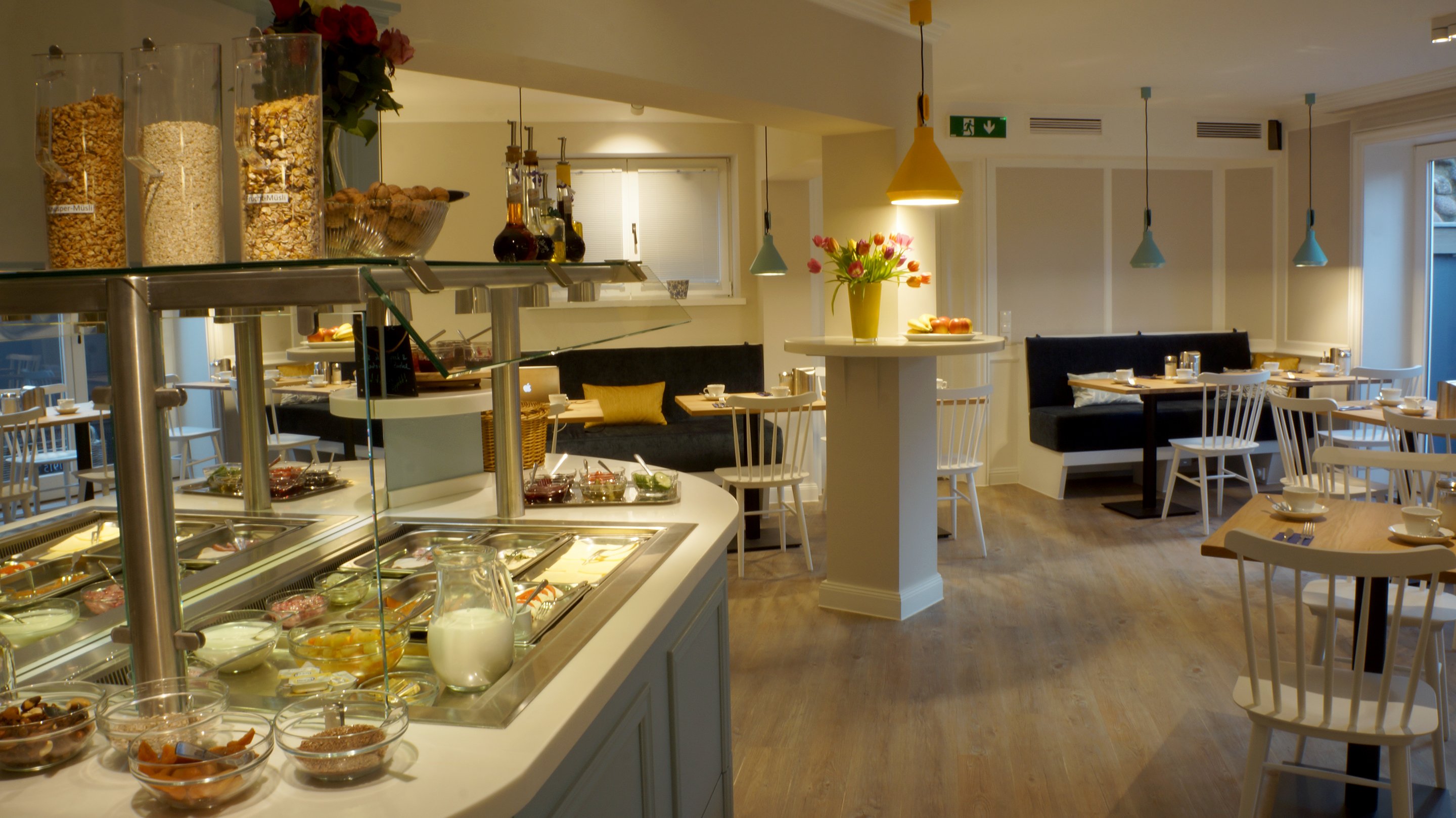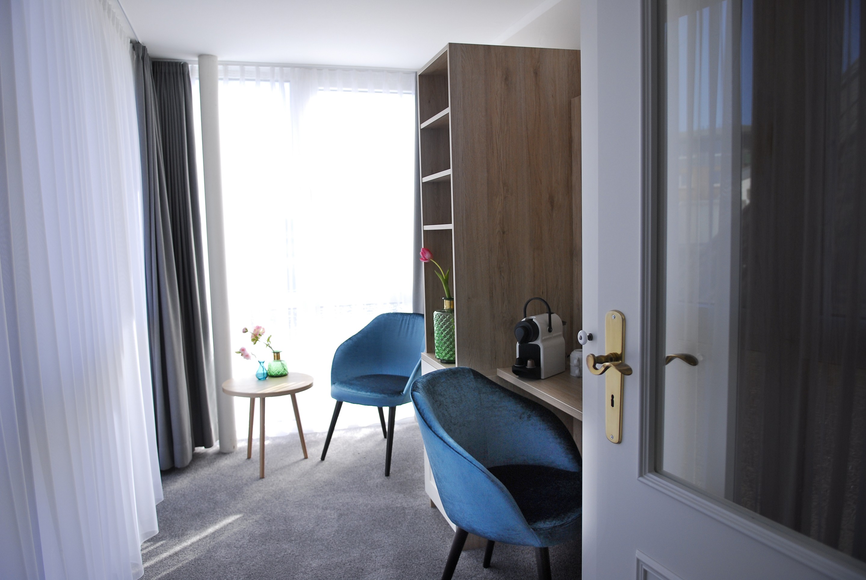 Alle Zimmer im Haus am Wäldchen fallen sofort durch Ihre markanten blauen Samtstühlen auf und erwarten unsere Gäste mit modernen Bädern. Zum Frühstücksraum, Sauna und zur Rezeption gelangen Sie zu jeder Jahreszeit gemütlich durch unseren unterirdischen Verbindungsgang. Treten Sie ein....