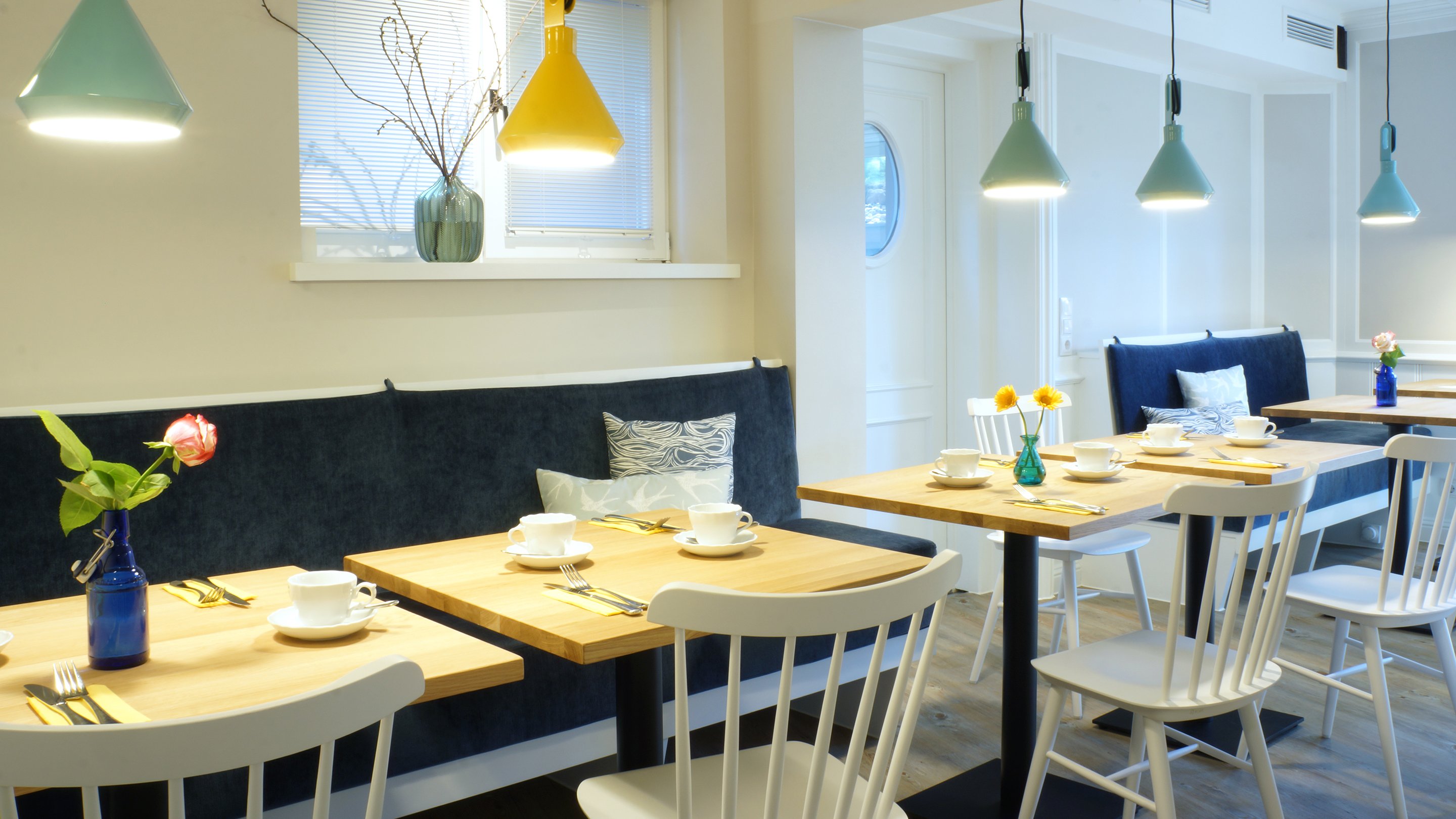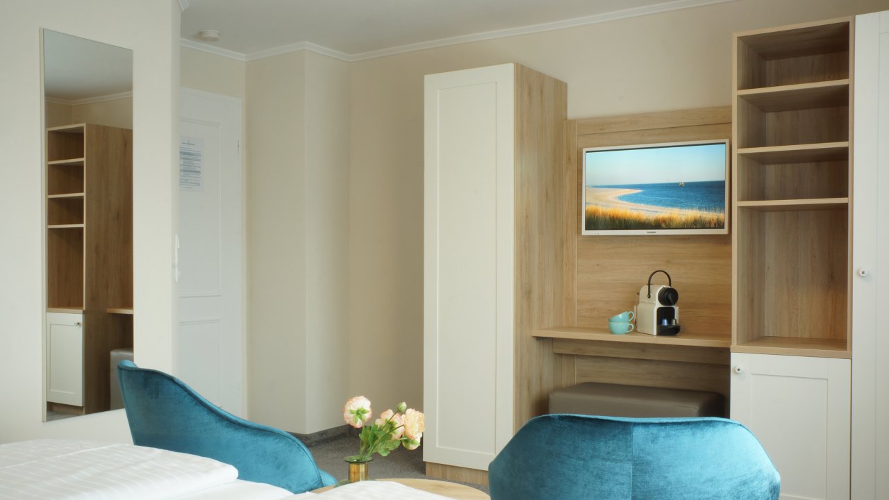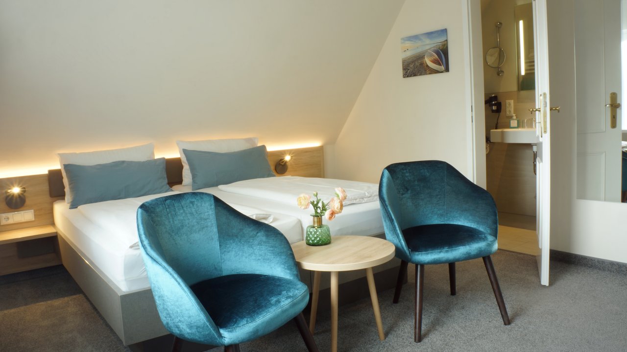 Alle Zimmer im Haus am Wäldchen fallen sofort durch Ihre markanten blauen Samtstühlen auf und erwarten unsere Gäste mit modernen Bädern. Zum Frühstücksraum, Sauna und zur Rezeption gelangen Sie zu jeder Jahreszeit gemütlich durch unseren unterirdischen Verbindungsgang. Treten Sie ein....