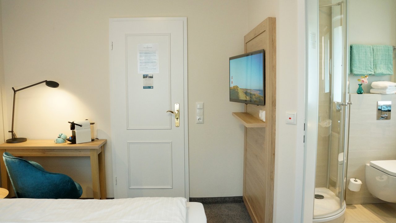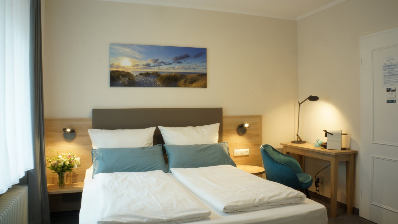 Alle Zimmer im Haus am Wäldchen fallen sofort durch Ihre markanten blauen Samtstühlen auf und erwarten unsere Gäste mit modernen Bädern. Zum Frühstücksraum, Sauna und zur Rezeption gelangen Sie zu jeder Jahreszeit gemütlich durch unseren unterirdischen Verbindungsgang. Treten Sie ein....