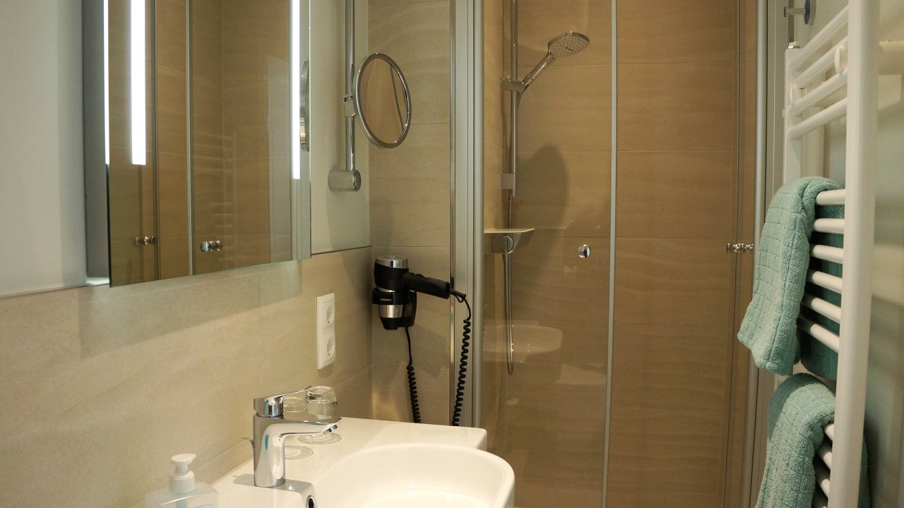 Alle Zimmer im Haus am Wäldchen fallen sofort durch Ihre markanten blauen Samtstühlen auf und erwarten unsere Gäste mit modernen Bädern. Zum Frühstücksraum, Sauna und zur Rezeption gelangen Sie zu jeder Jahreszeit gemütlich durch unseren unterirdischen Verbindungsgang. Treten Sie ein....